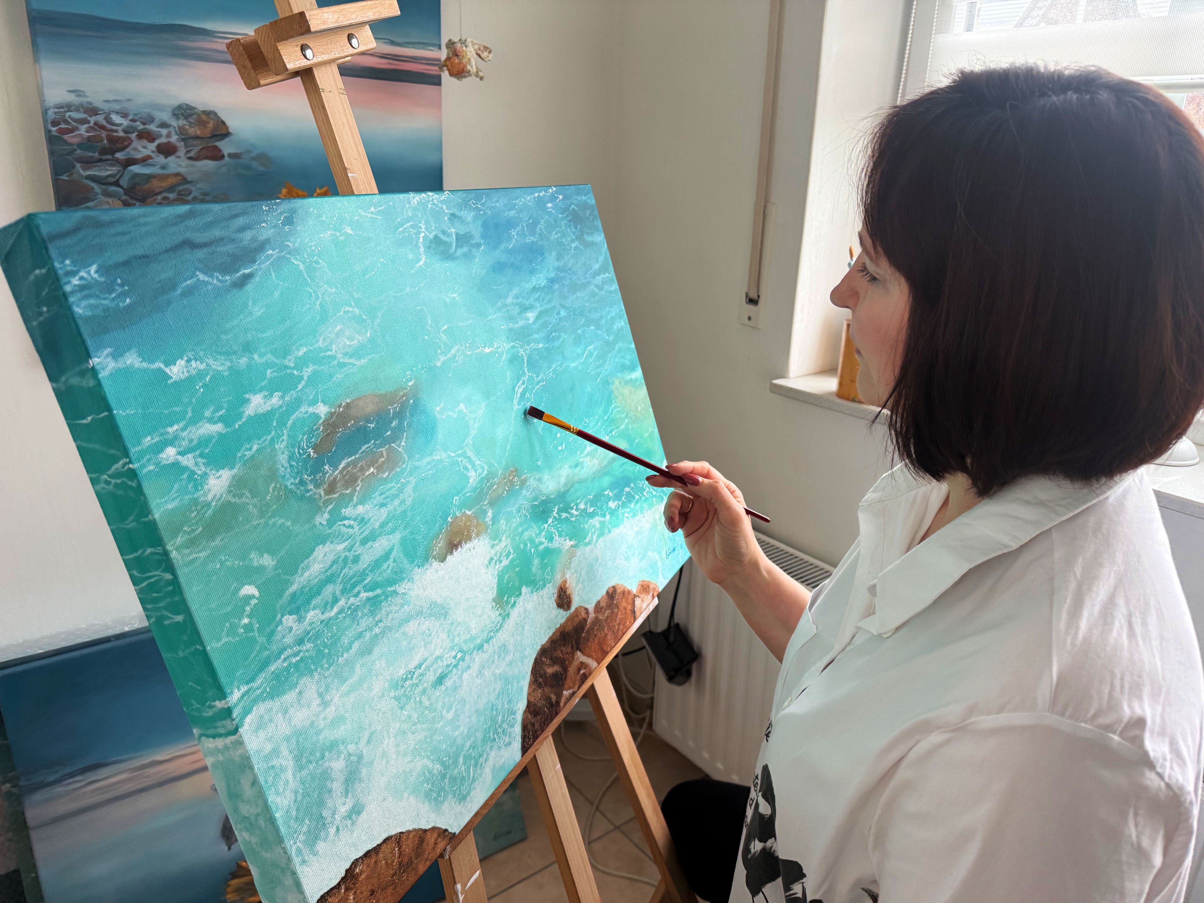 I have been working as a self-taught artist since 2021. In the beginning, I experimented with various themes and materials, mainly acrylic paints. Since 2023, I have primarily been painting with oil paints and have found my central theme: the sea.
